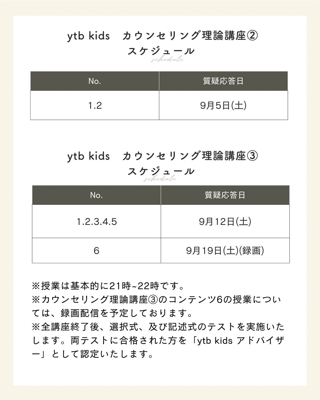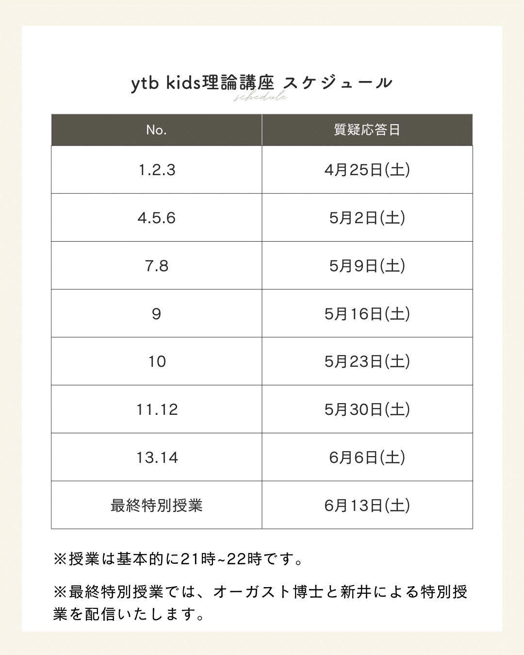 なお、本講座は、ytb kids理論講座をご受講済みの方、もしくはytb kids理論講座を同時にお申込みの方のみが