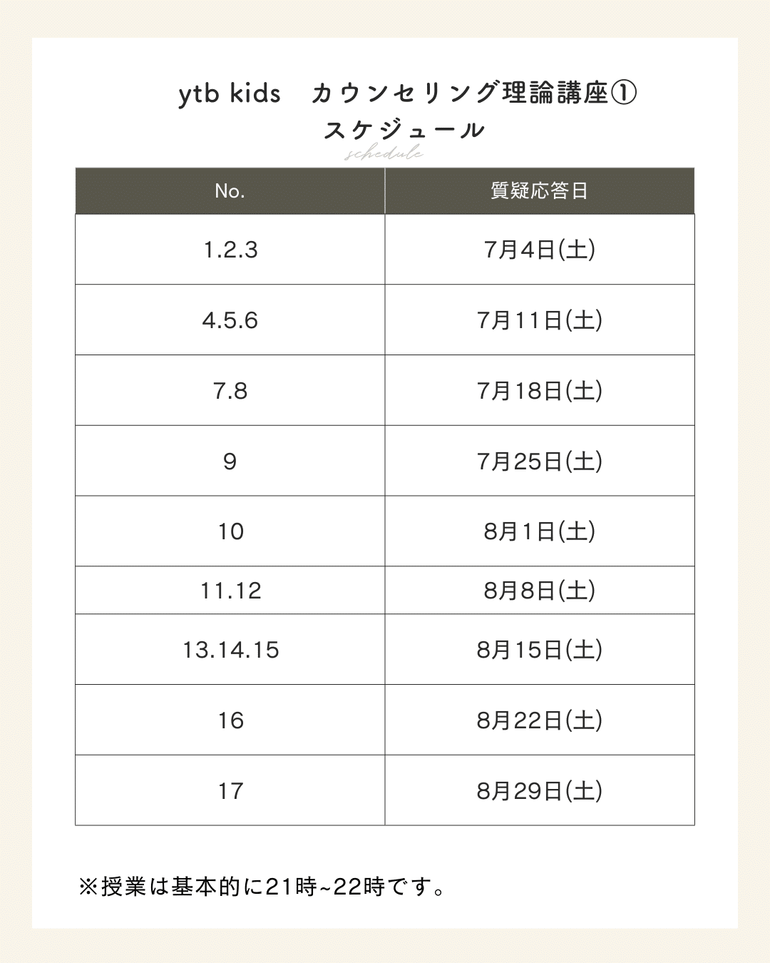 ご予約時に、ytb kids理論講座をご受講いただいた実績があるか、